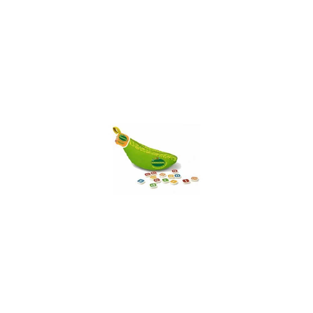 Bananagrams junior. Version verte enfant pour jouer dès 5 ans avec 12 mini jeux adaptés pour jouer avec les lettres, syllabes, sons et commencer à composer des mots.