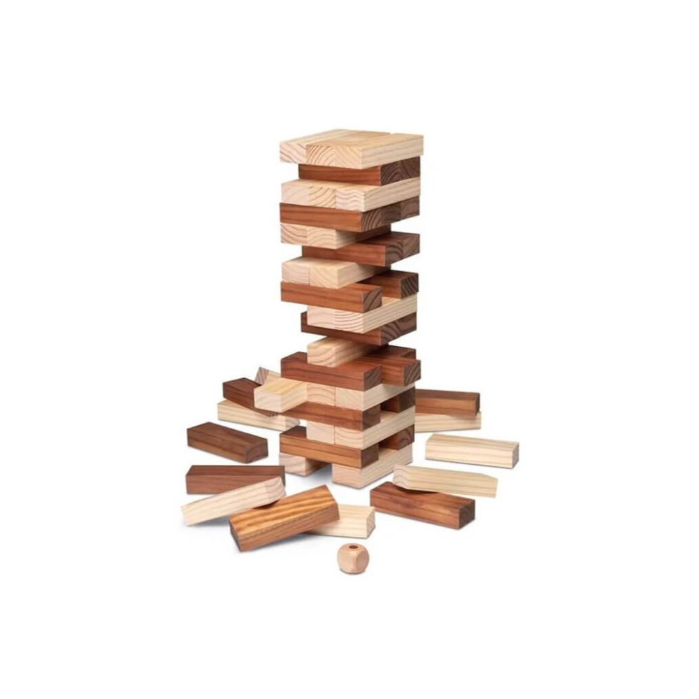 Prenez les blocs qui ne sont pas nécessaires à la stabilité de la tour et placez les au-dessus pour la rendre la plus haute possible, mais attention, si elle tombe, vous perdez ! Il est présenté dans une boîte en carton recyclable.