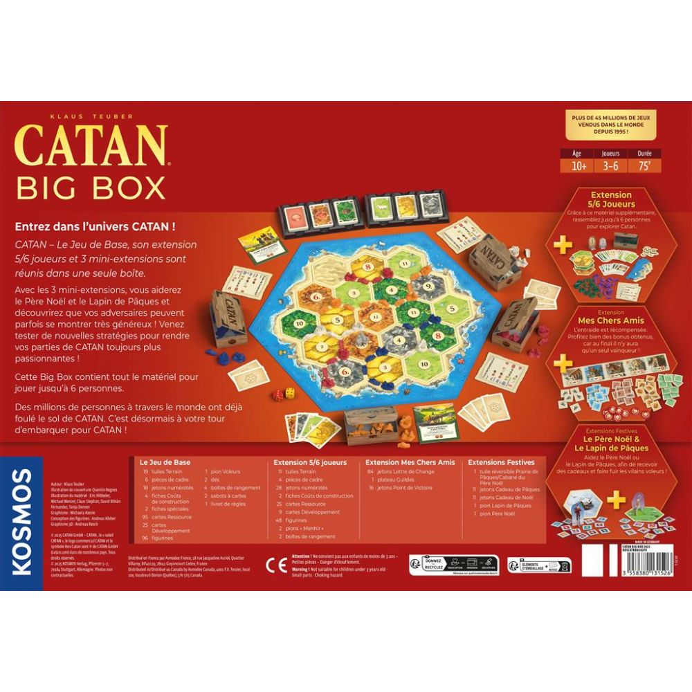 Entrez dans l’univers CATAN ! CATAN – Le Jeu de Base, son extension 5/6 joueurs et 3 mini extensions sont réunis dans une seule boîte grâce à cette édition spéciale. Venez tester de nouvelles stratégies pour rendre vos parties de CATAN toujours plus passionnantes ! Un coffret riche en contenus, idéal à offrir en cadeau.