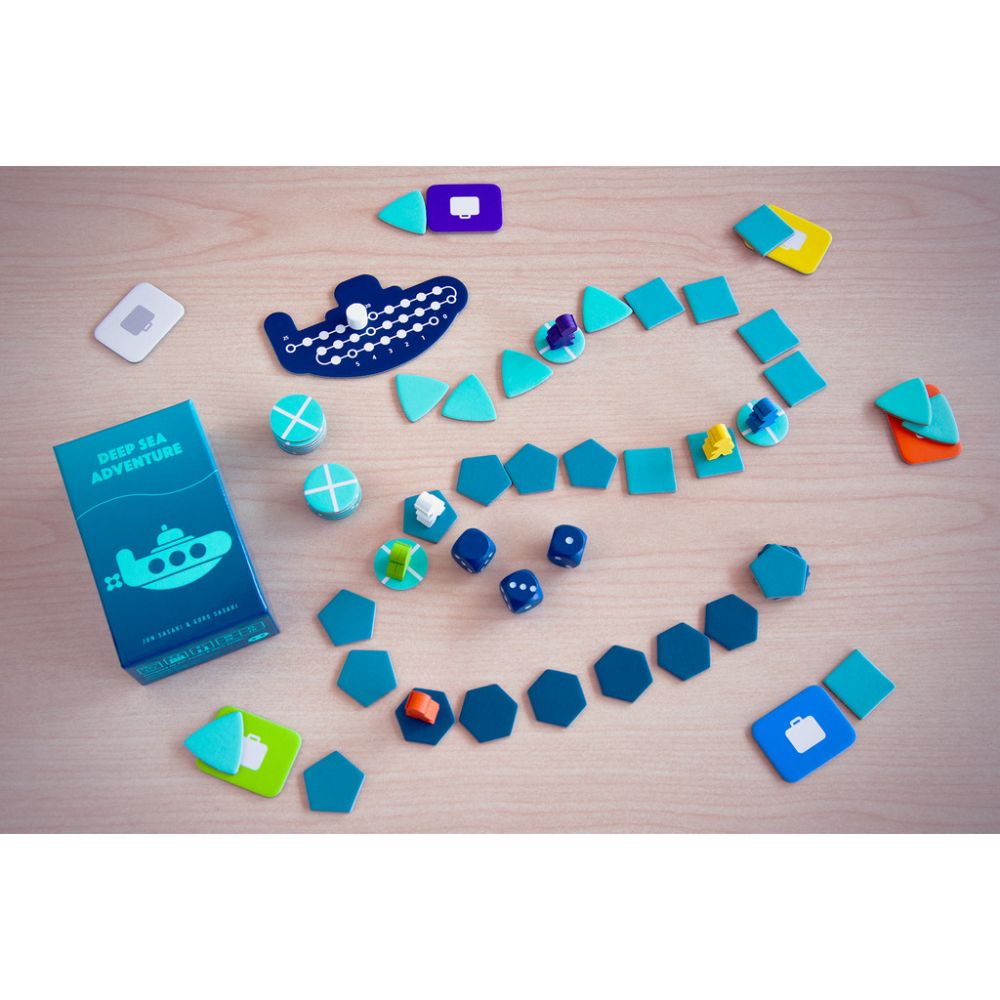 Plongez au plus profond des oc?ans ! Utilisez trois d?s et votre turbo ? bon escient pour remonter plus de tr?sors que vos concurrents. Prenez place ? bord d’un sous-marin d’explorateurs avides de d?couvrir les tr?sors jonchant le fond des oc?ans. Enfilez votre combinaison de plong?e mais soyez prudents? tous les explorateurs partagent l’unique r?serve d’oxyg?ne de ce vieil engin ! Ne soyez pas trop t?m?raire ou vous risqueriez de mettre tout le monde en danger !