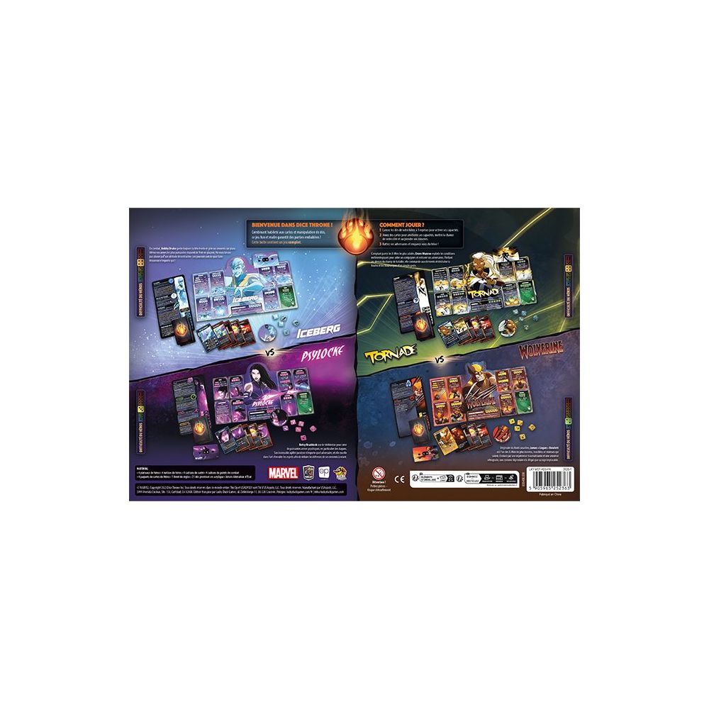 Dans Marvel Dice Throne X-Men , vous devenez l’un des huit héros les plus célèbres des X-Men, dont : Cyclope, Gambit, Malicia, Jean Grey, Iceberg, Psylocke, Tornade et Wolverine !