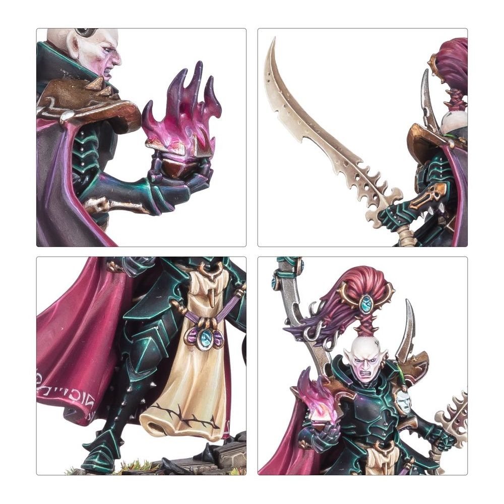 Ce kit en plastique permet d’assembler un Archonte, un meneur cruel et sadique pour vos armées de Drukhari dans les parties de Warhammer 40,000. Sa spécialité est l’orchestration des raids sur l’espace réel et la capture de prisonniers pour les rapporter au sein de la sombre cité de Commoragh. L’Archonte peut être équipé au choix d’un piège à âmes, d’un pistolet éclateur ou d’un pistolet disloqueur, et d’un neurocide, d’une lame dessicante ou d’une épée énergétique de maître. Le kit propose deux options de torse, trois têtes, deux ceintures, et un socle scénique évocateur. Quelle que soit la façon dont vous l’assemblerez, sa pose dynamique et ses nombreux détails sinistres en feront une pièce de choix pour mener vos armées à la victoire ou laisser s’exprimer vos talents de peintre.