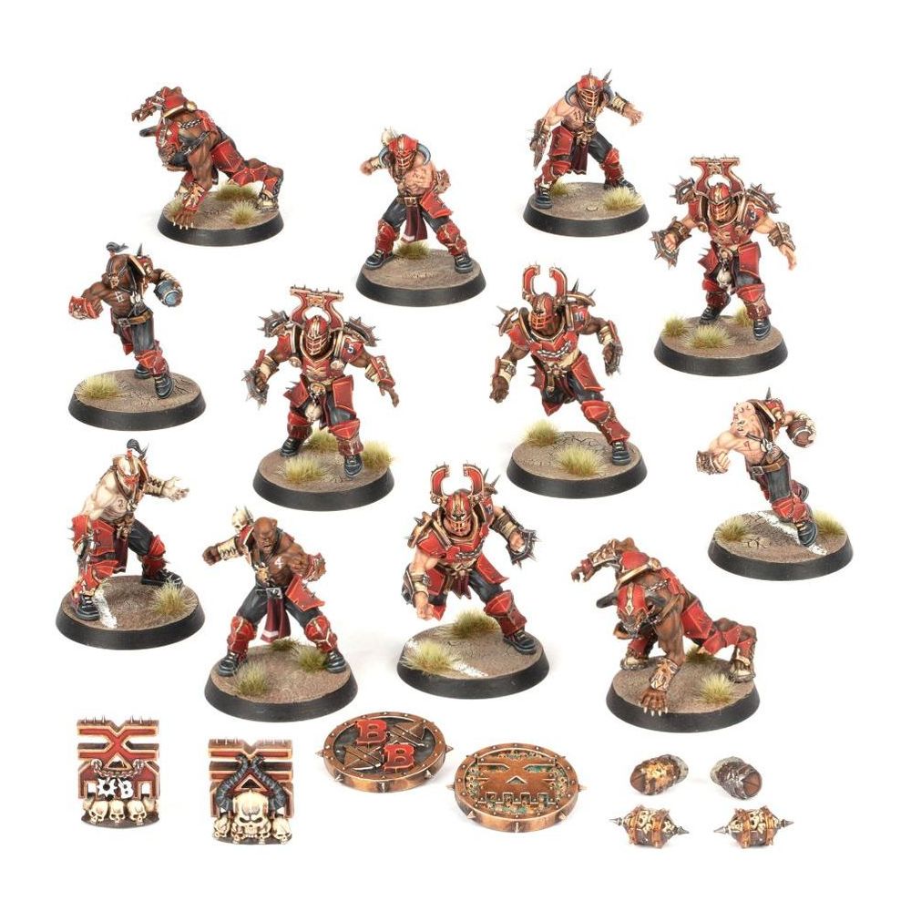 Vous voulez une équipe capable de mutiler facilement vos adversaires, et de marquer de beaux touchdowns? Les équipes de Khorne ont tout ce qu’il faut côté bagarre et juste assez de cervelle pour exploiter leur brutalité. Les Marauder Linemen sont suffisamment solides pour encaisser les dégâts, et assez malins pour se rappeler de passer le ballon pendant les matchs. Ceux qui survivent au terrible régime d’entraînement des équipes de Khorne deviennent des Bloodseekers. Incroyablement violents et sanguinaires jusqu’à l’obsession, ils se spécialisent dans la mise à la retraite d’office des joueurs adverses tout en se déchargeant des ballons sur leurs coéquipiers Khorngors – des Beastmen canins qui ne pensent qu’à marquer des touchdowns.