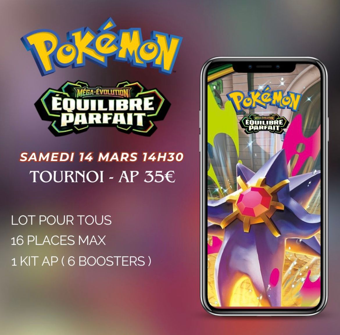🎲 Salutations les amis ludiques 🎲   🚨 L'avant première Pokémon Méga Evolution Equilibre parfait arrive à grand pas ! 🚨 Rendez vous le Samedi 14 Mars à 14h30 pour un paquet scellé découverte. Le prix d'entrée est de 35€ et comprend : 1 Kit d'AP de 6 Boosters Lot pour tous Inscriptions obligatoire sur […]