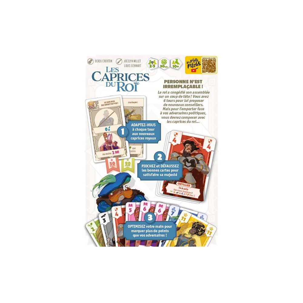 Sur un coup de tête, le roi dissout l’assemblée. Vous êtes mandaté pour constituer un nouveau gouvernement. Accédez aux désidératas changeants du roi, en adaptant votre recrutement. Mais vous n’êtes pas seul·e dans la course. Surveillez vos adversaires et ne leur laissez pas les cartes dont ils auraient besoin !