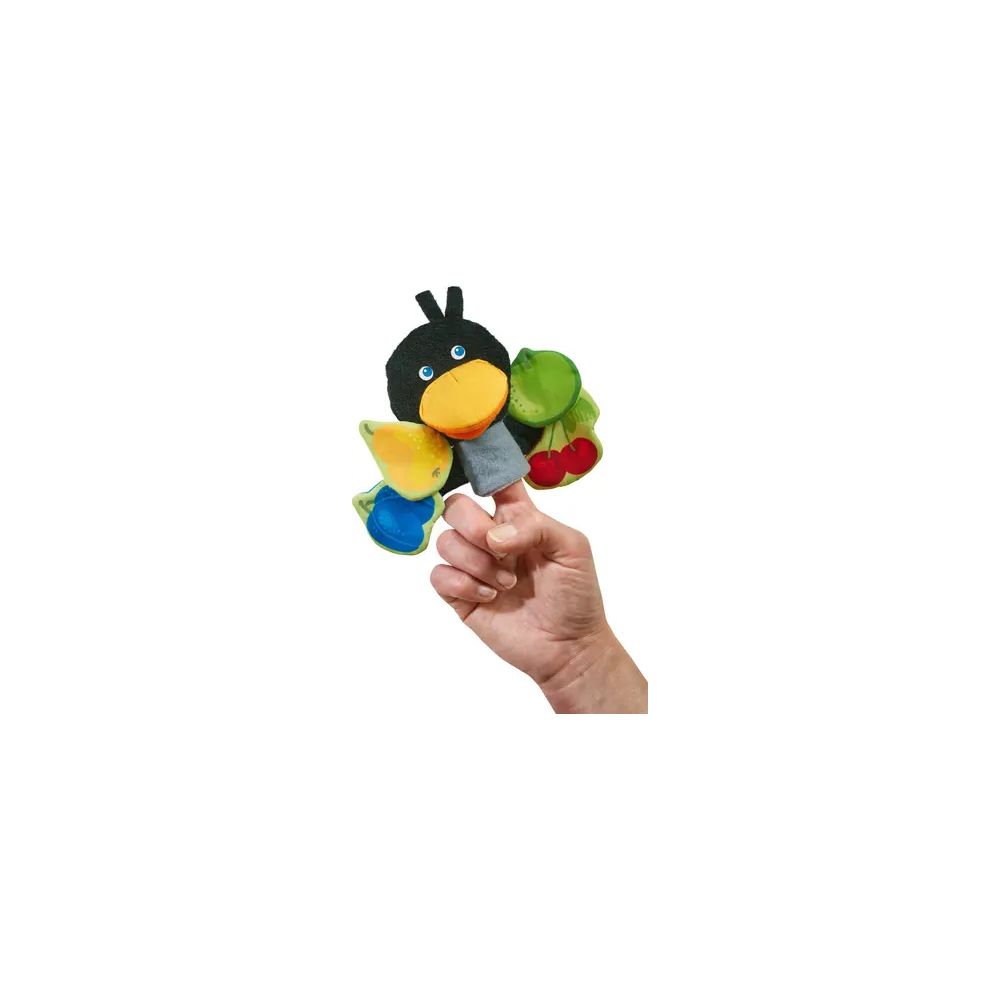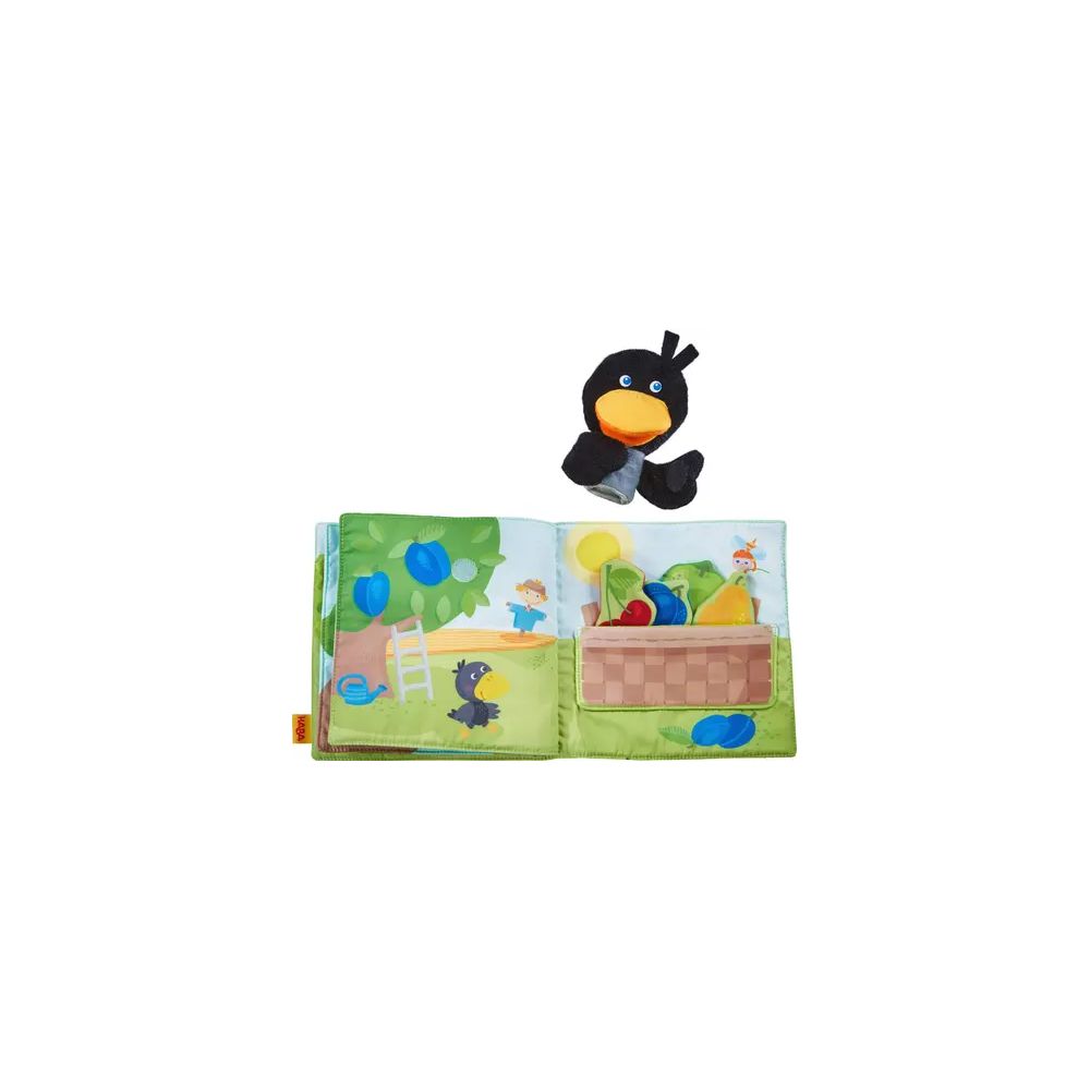 Emmenez Théo le corbeau marionnette à doigt à travers le verger. Ses ailes ont une attache auto-agrippante lui permettant de prendre les fruits sur ses ailes pour les emmener dans le panier! Ce livre possède des beaux effets tactiles ludiques à découvrir!
