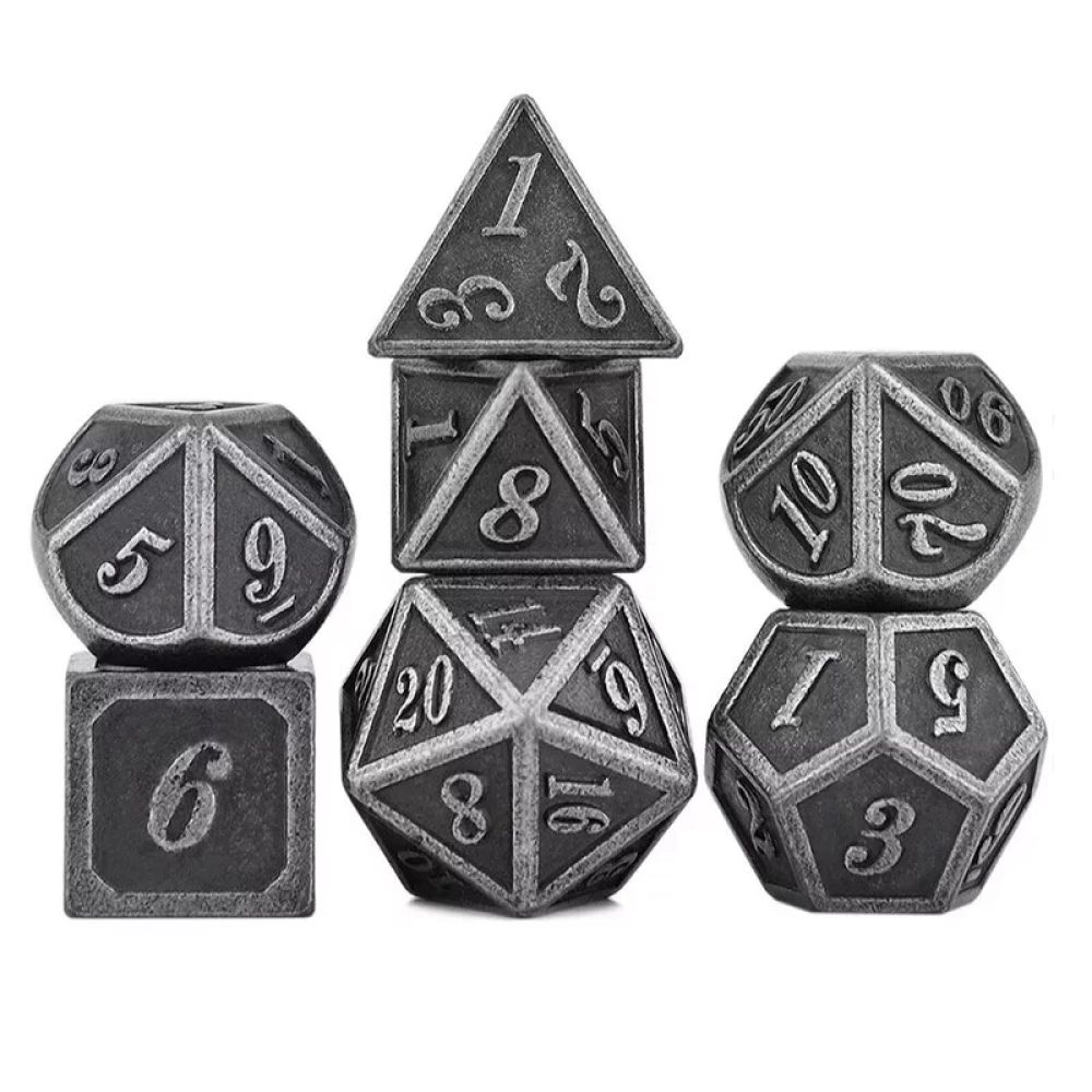 Lot de 7 dés métal 14mm – Outlined Silver