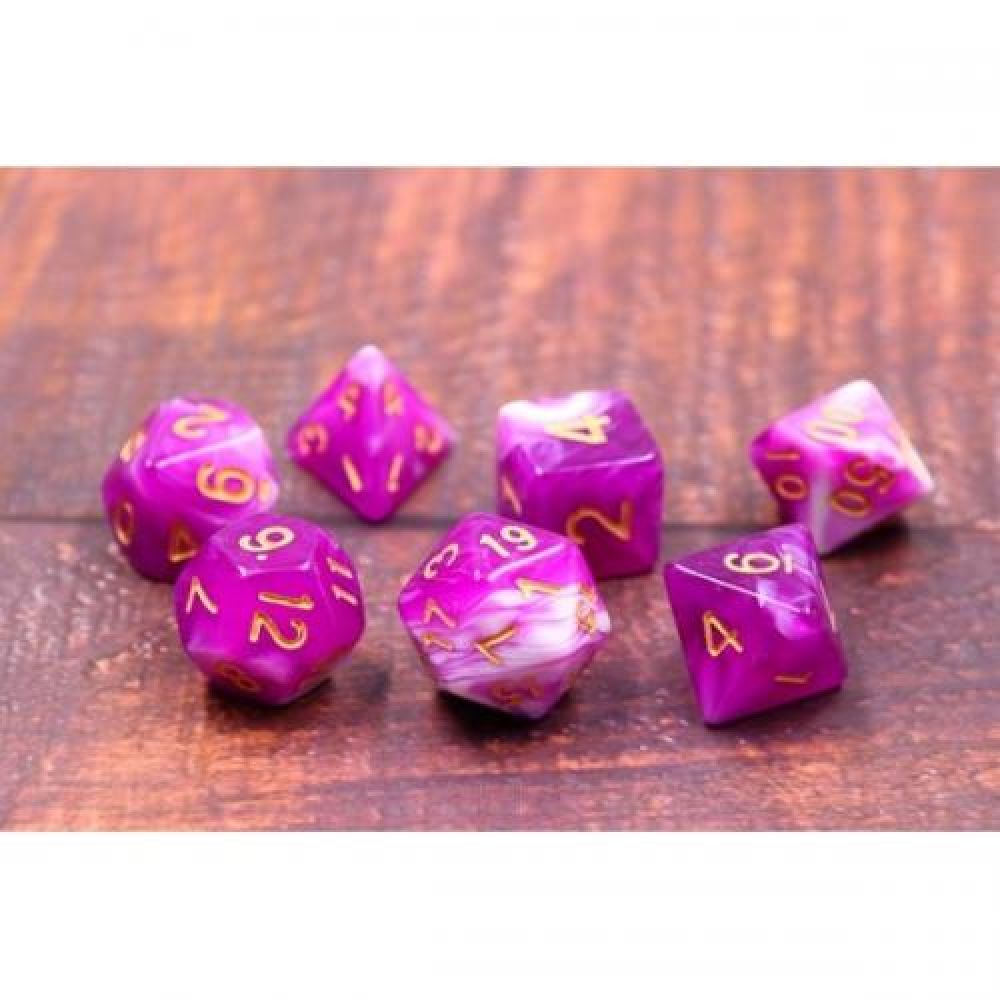 Lot de 7 dès en boite (D4,D6,D8,D10,D10 Dizaine,D12,D20)