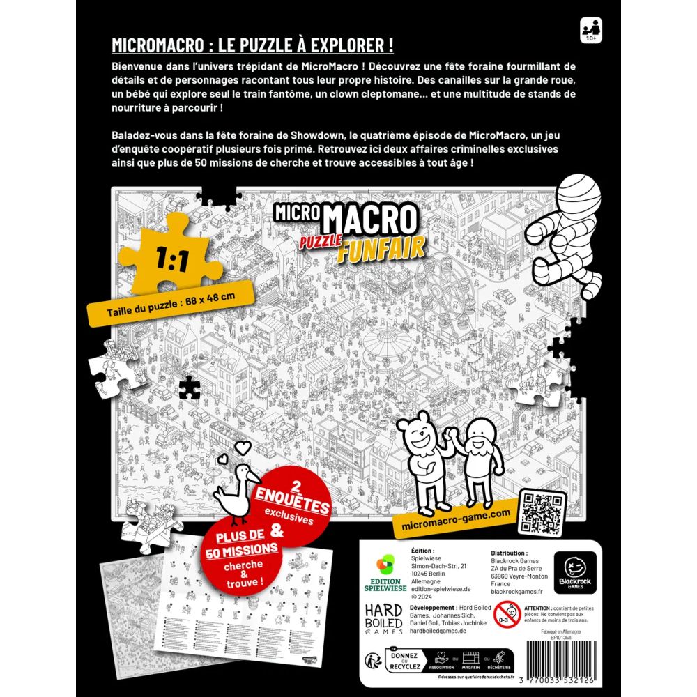 Découvrez le quartier de MicroMacro Showdown dans ce puzzle de 500 pièces, avec ses ruelles et sa Fête foraine. Deux enquêtes inédites ainsi que plus de 50 missions “cherche et trouve” vous y attendent, vous plongeant dans un monde où chaque détail compte.