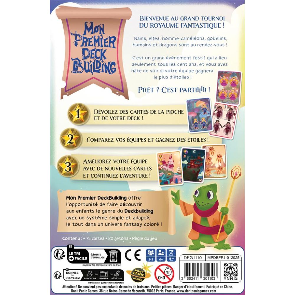 Bienvenue au grand tournoi du Royaume Fantastique ! Nains, elfes, gobelins et dragons se pr?parent ? l?affrontement? Et vous, ?tes-vous pr?t ? former la meilleure ?quipe ? Dans Mon Premier Deckbuilding, les enfants d?couvrent le plaisir de construire et d’am?liorer leur deck tour apr?s tour.