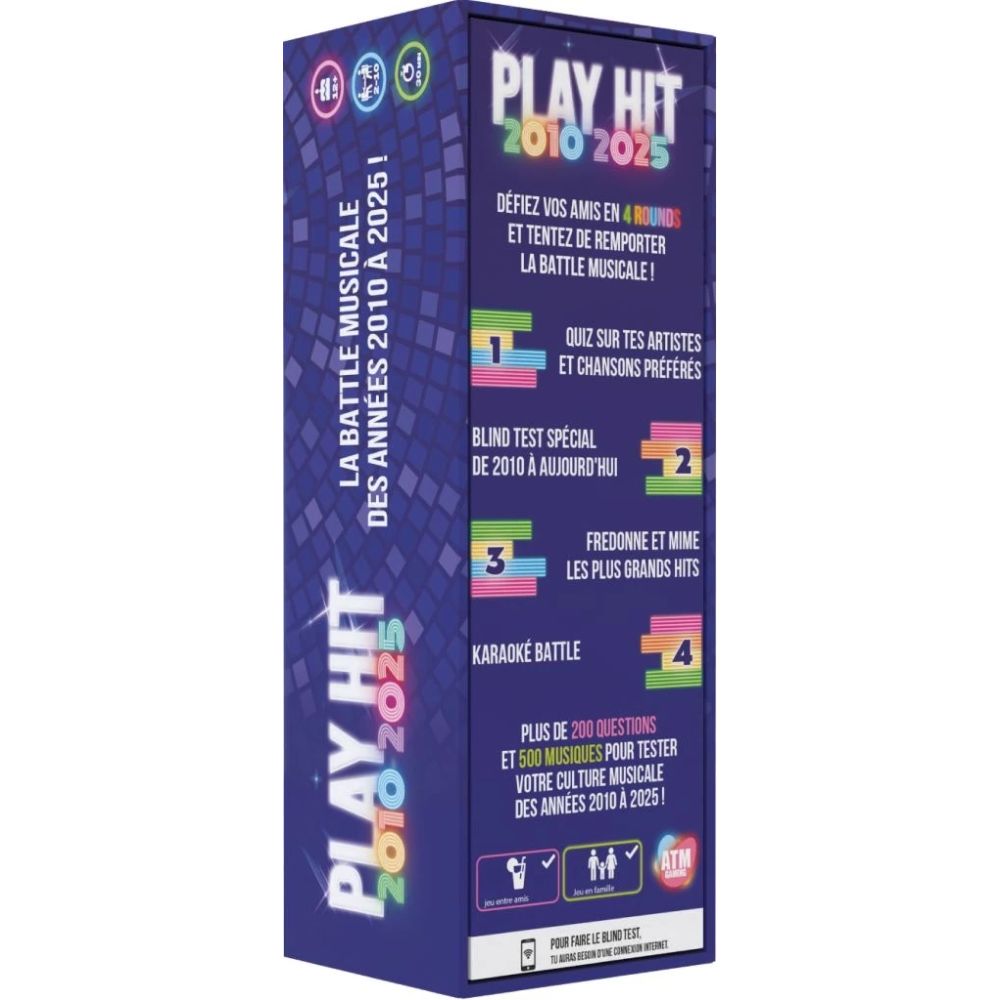 Contenu : 240 cartes réparties en 4 manches pour se remémorer les meilleurs hits des années 2010/2025!
