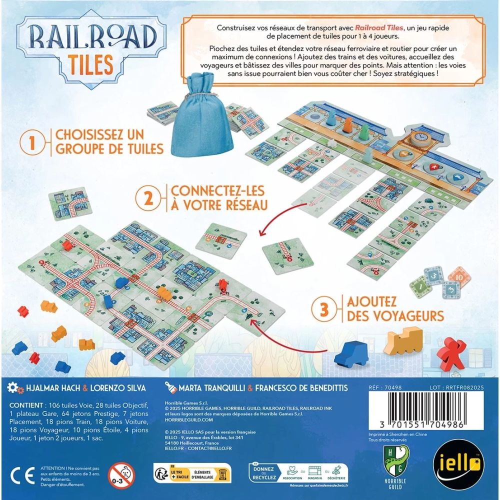 Avec ses règles accessibles mais ses choix tactiques riches, Railroad Tiles séduira aussi bien les amateurs de jeux familiaux que les passionnés de casse-tête stratégiques.