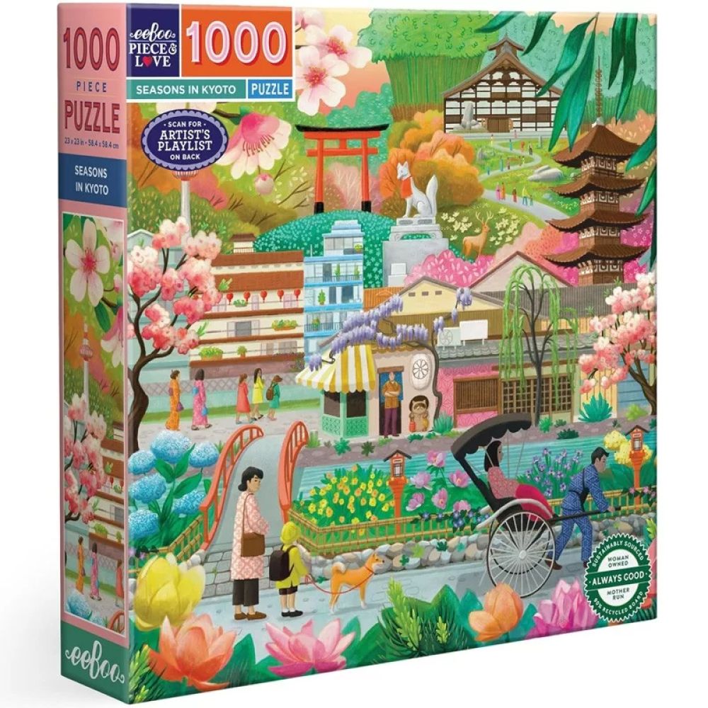 Assemblez pièces après pièces ce puzzle de 1000 pcs intitulé Seasons in Kyoto au format carré, pour vous évader de la routine quotidienne. Dès 8 ans.