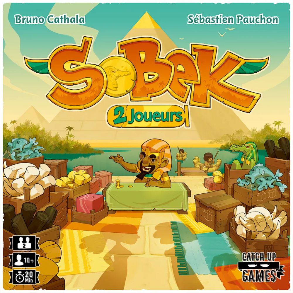 Dans Sobek 2 joueurs, deux adversaires collectent et vendent des Marchandises pour remporter le plus de Points de Victoire. Quand un joueur prend une Marchandise, il en sélectionne une dans l’alignement du pion Ankh et l’ajoute à sa main. Il place alors le pion Ankh dans l’alignement indiqué par la tuile qu’il vient de prendre, déterminant ainsi les choix de son adversaire.