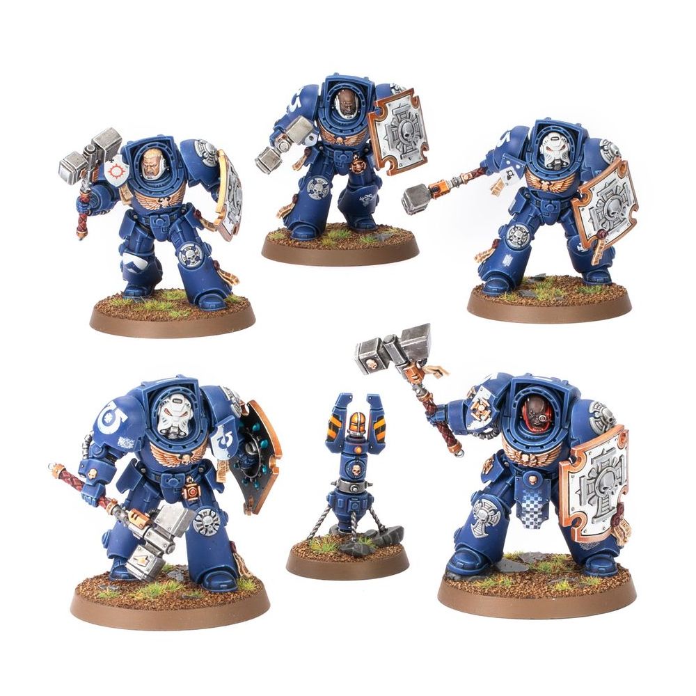 Les Escouades d’Assaut Terminator sont équipées d’armes de corps à corps dévastatrices, idéales pour les actions d’avant-garde féroces et les abordages. Les Terminators se précipitent pour engager le combat contre les guerriers ennemis les plus redoutables, les lacèrent avec leurs griffes Lightning ou leur brisent le crâne à coups de marteaux Thunder.