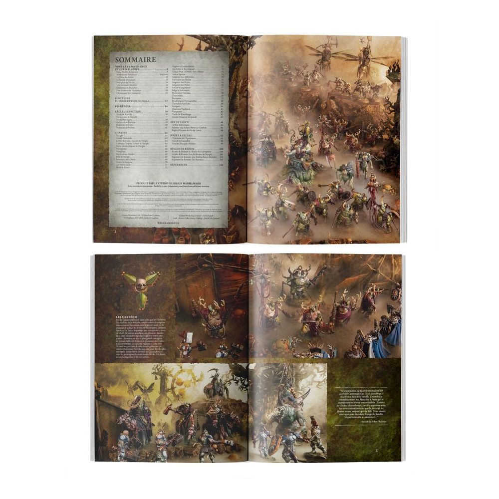 – Une section dépliante de 8 pages présentant une carte de l’Éternel Renouveau et de nombreux détails sur les Seigneurs de la Pestilence