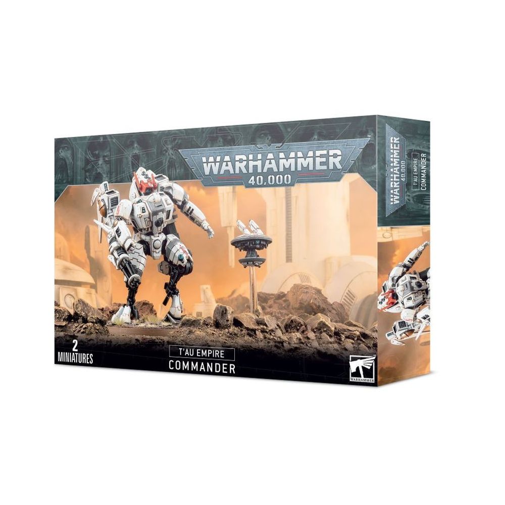 Rapides et mortels, les Commandants T’au pilotent des exo-armures d’une taille et d’une puissance effrayantes. Bien sûr, le simple fait de piloter une énorme exo-armure ne change pas automatiquement un soldat de la troupe en Commandant. Plus que tout, c’est leur esprit stratégique et leur capacité à s’adapter aux situations inattendues qui distinguent ces pilotes des autres. De nombreuses années de dévouement inlassable sont nécessaires pour atteindre ce rang prestigieux. Tous les Commandants T’au ont obtenu leur grade à la dure. Leurs Exo-armures Crisis XV85 Enforcer sont équipées d’armes à la puissance redoutable: lance-flammes, éclateurs à ions et lanceurs de charge à dispersion comptent parmi les armes à leur disposition, qui peuvent être complétées par des systèmes de contre-mesure électroniques et d’énormes capacités de traitement de données qui améliorent leurs prouesses au combat.