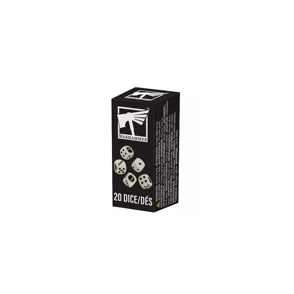 Vous venez de mettre la main sur votre première boîte de Patrouille ou de Fer de Lance et vous avez besoin de quelques dés Warhammer supplémentaires pour vos parties?? Ce set de 20 dés de couleur os est exactement ce dont vous avez besoin, avec de sobres marquages noirs et un crâne tout ce qu’il y a de plus Warhammer-esque sur la face du 6.