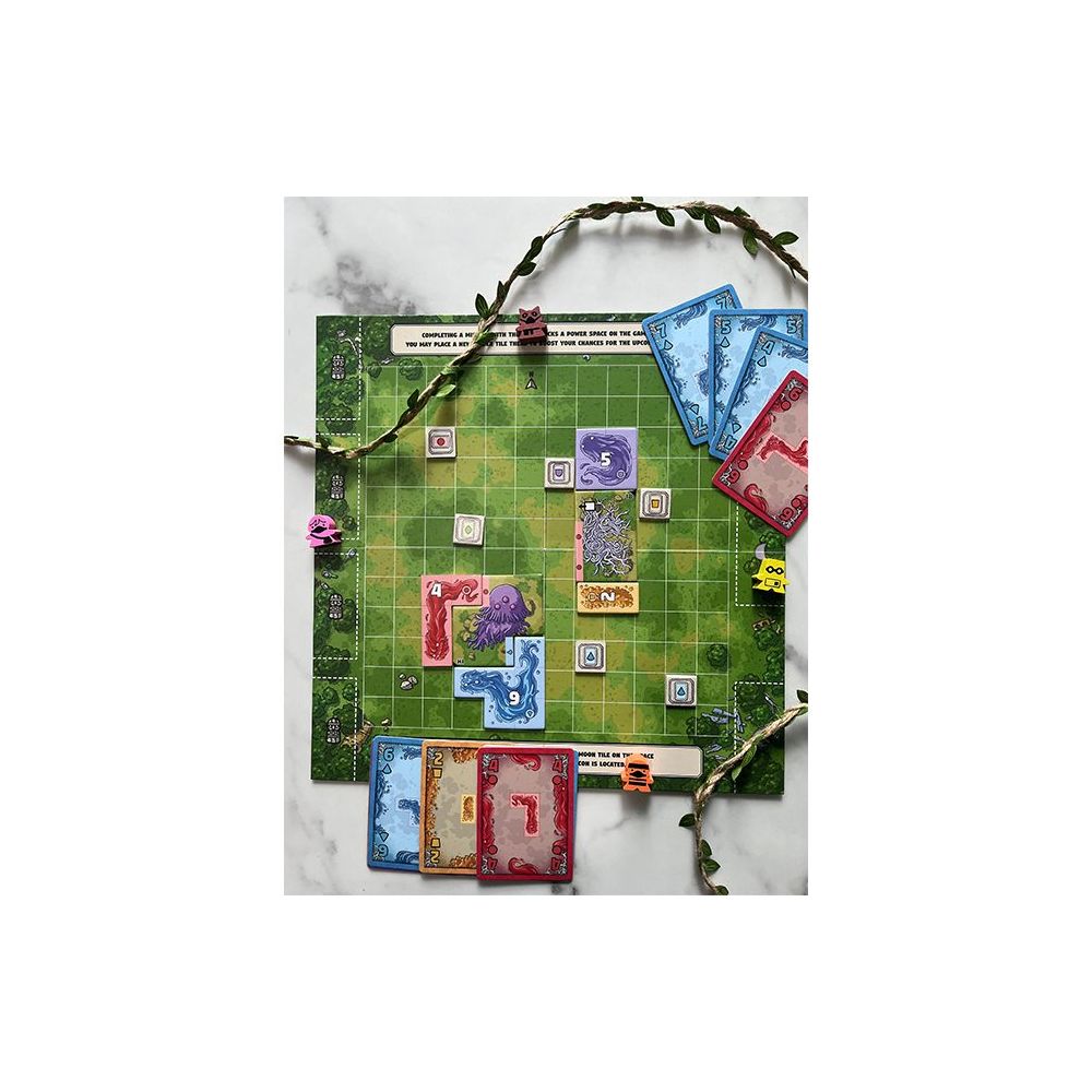 Chaque mission vous met au défi de entourer les tuiles Mission avec vos tuiles Esprit en jouant une série de plis. Chaque configuration est unique, avec sa propre carte, ses récompenses (parfois cachées) et ses contraintes de placement. Une planification minutieuse et un travail d’équipe sont essentiels pour progresser dans le royaume.